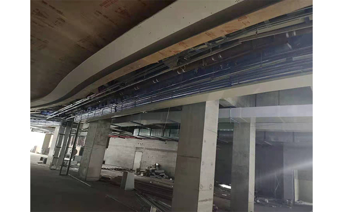 擋煙垂簾垂壁根據(jù)設(shè)計要求和現(xiàn)場實(shí)際情況采取如下施工順序:首先,搭設(shè)腳手架一放線一打眼--上脹栓一焊骨架。第二,吊件一安裝骨架…